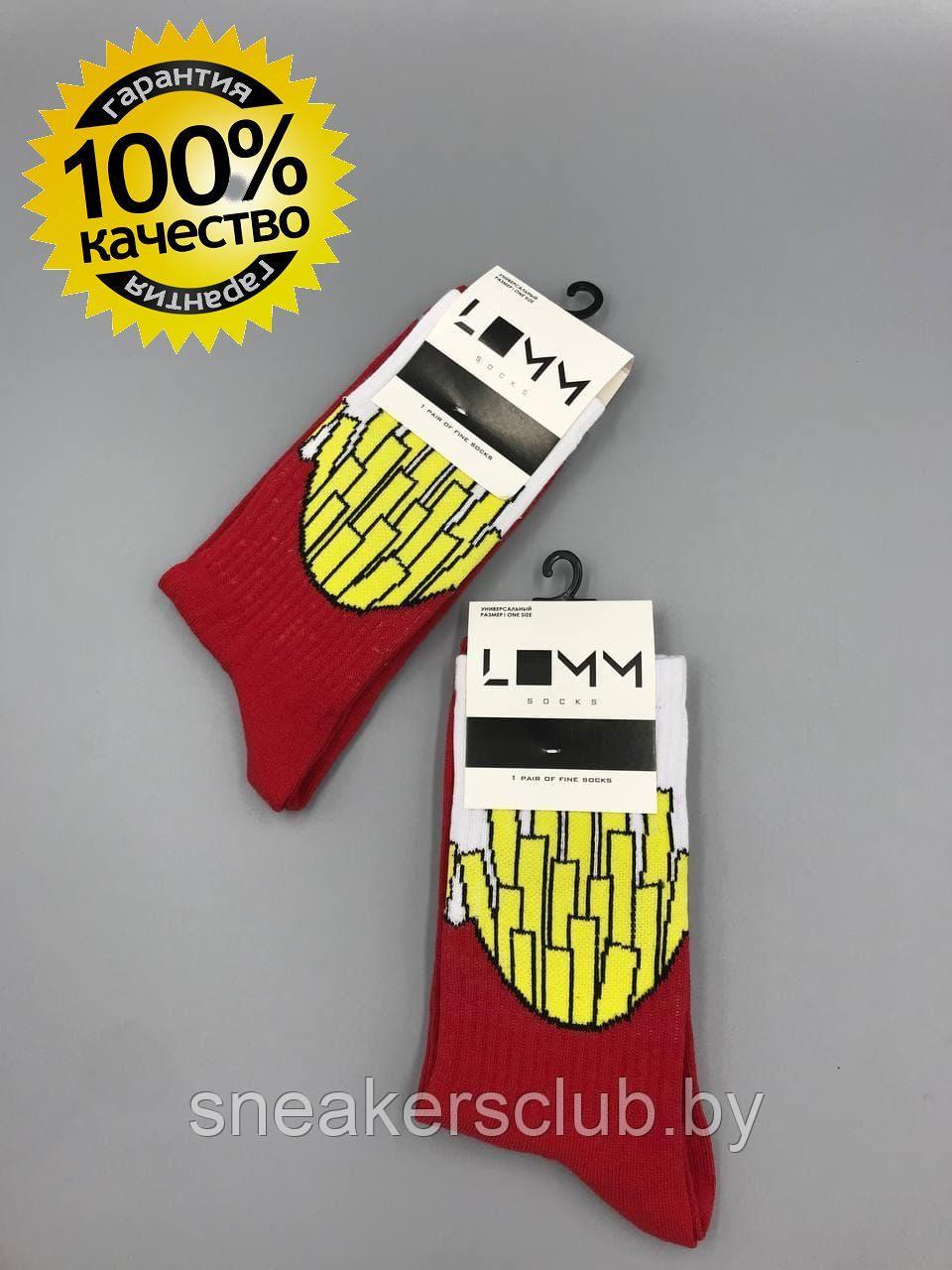 Яркие носки с принтом "Картошка фри" / one size / удлиненные носки / носки с рисунком